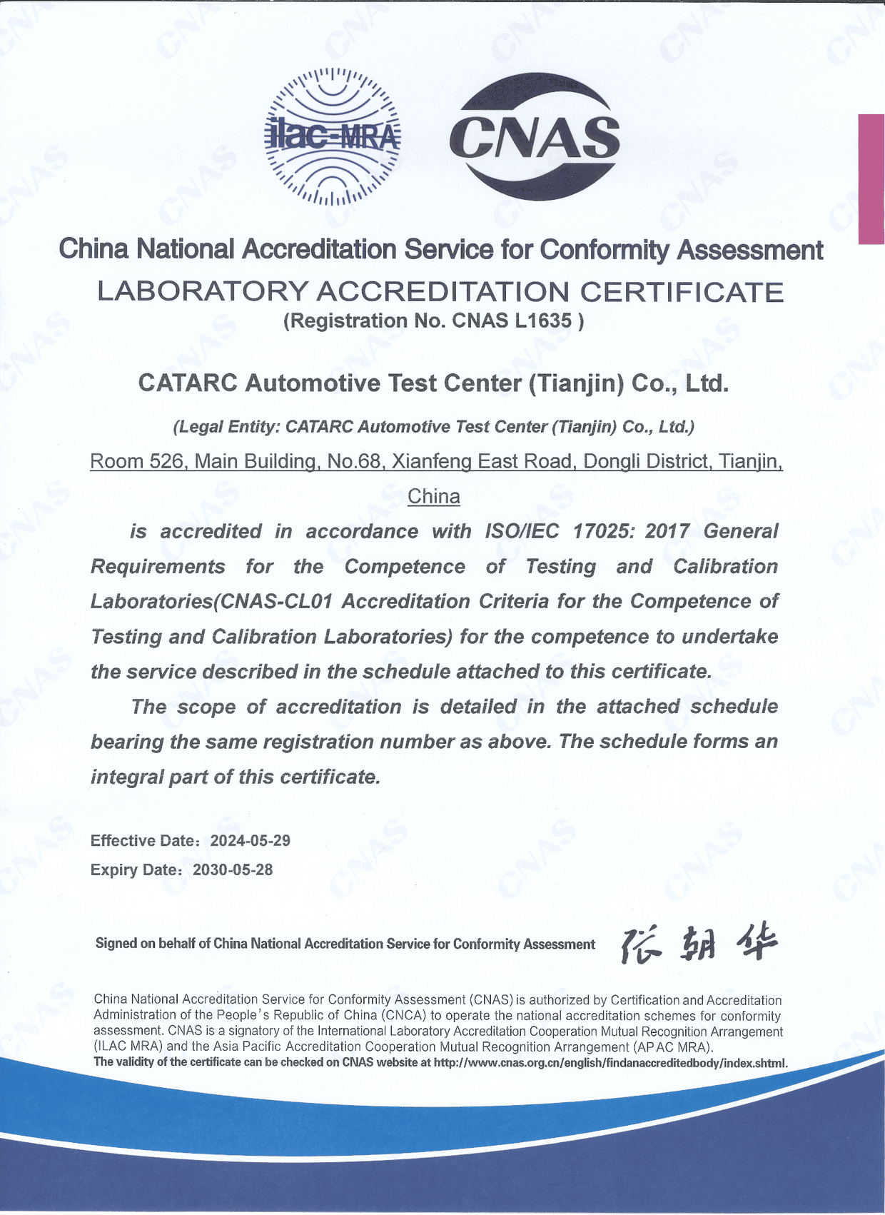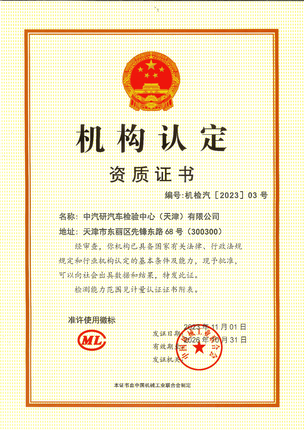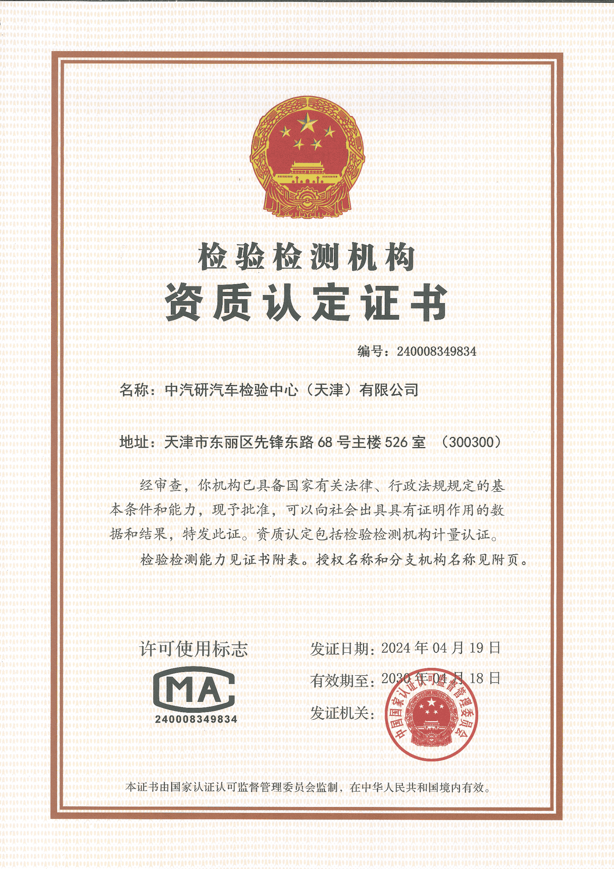 中汽研汽車檢驗中心(天津)有限公司(原天津汽車檢測中心,簡稱天津檢驗中心)始建于1987年,是由中國汽車技術研究中心有限公司(簡稱中汽中心)投資建立,是具有行業影響力的獨立第三方汽車產品檢測及技術服務機構,被國家認證認可監督管理委員會(CNCA)授權為國家轎車質量檢驗檢測中心、國家智能網聯汽車質量檢驗檢測中心(天津),已通過了國家認證認可監督管理委員會(CNCA)資質認定、中國合格評定國家認可委員會(CNAS)實驗室認可。