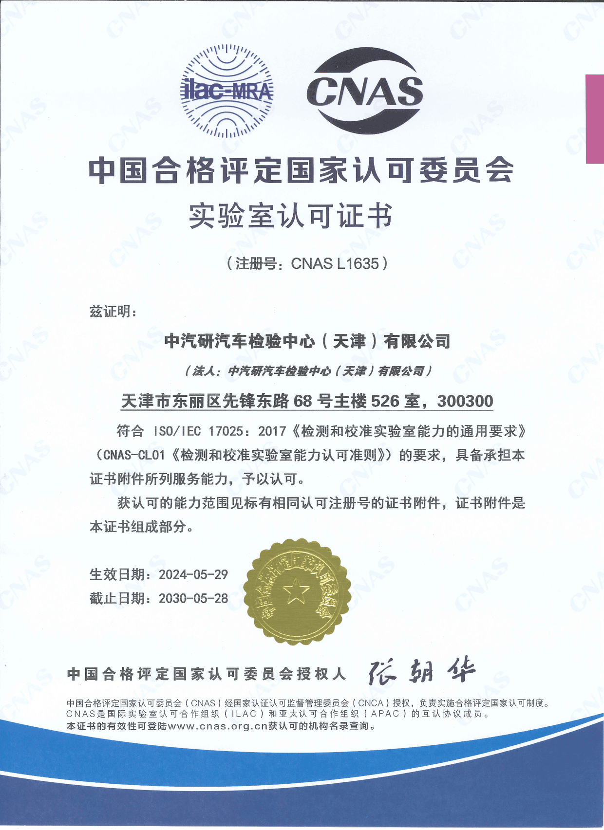 截至目前,天津檢驗中心已獲得政府部門認可授權的資質有:國家轎車質量檢驗檢測中心、國家智能網聯汽車質量檢驗檢測中心(天津)、國家汽車新產品申報公告檢測機構、國家強制性產品認證(CCC)指定實驗室、汽車...